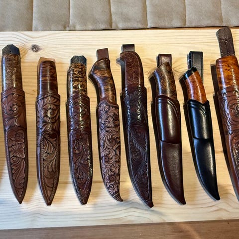Har en lot med kniver ; noe fabrikks kniver , noe fra kniv makere i norge som jeg ønsker å selge . Kan også byttes bort oppdelt eller samlet i ting fra ww2 ( tyske , ns ,at eller hjemmefront ) eller gammel stas kniv / bunadskniv eller eldre dolker ,bajonetter . Samekniv og en finsk pukko er solgt