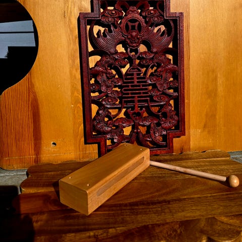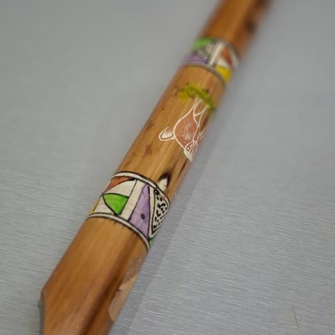 bambus regnstav fra Madagaskar med utskårne motiver