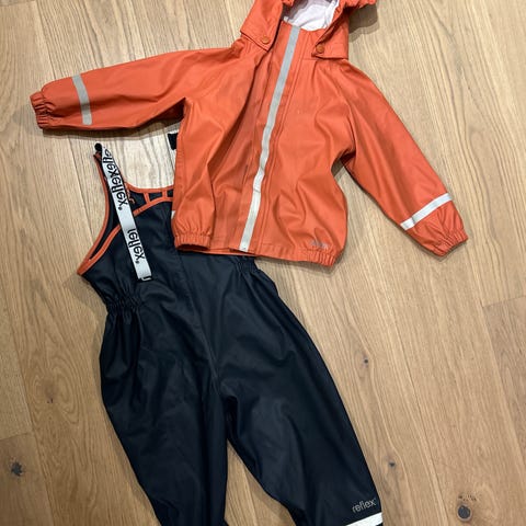 Bukse og jakke, rosa og blå. Str 134. Middels tykt regnsett