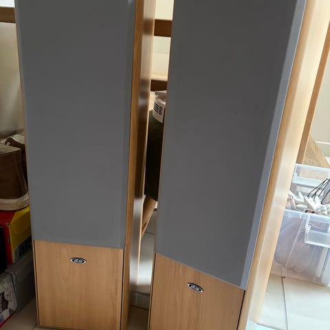 To Tannoy 632 høytalere med flott lyd, litt eldre generasjon men ennå bra kvalitet. en 621 senterhøytaler følger med, denne har blitt brukt i et surround system. Den ene 632 høytaleren har et hakk i plastrammen på toppen, se bilder. To gulv-stands følger med til 632 høytalerene, den ene mangler et plastdeksel på baksiden, ellers er alt i fin stand. Kan hentes i Sandnes.