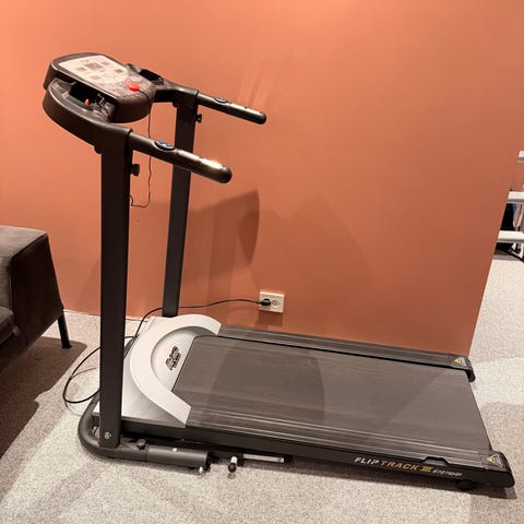 Merida tredemølle med innebygd treningscomputer. Konsollen har flere knapper for valg av hastighet og programmer, samt start- og stoppfunksjon. Tredemøllen har sikkerhetsnøkkel festet med snor. Løpebåndet kan felles opp for å spare plass ved lagring. Egnet til innendørs løpe- og gåtrening hjemme.