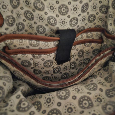 Jeg tror dette er skinn veske, men kan ikke være helt sikker