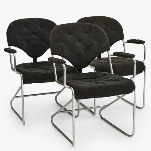 Søkeord: DUX, Sam Larsson, Sam, karmstol, spisestol, krom, skinn, vintage, 70-tall, svensk design, skandinavisk design