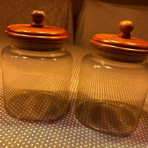 Bohus kjøkkenkrukker glass med trelokk