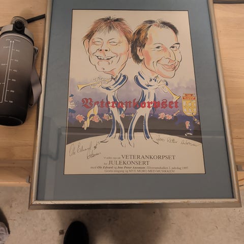 Nederst står det «Photography by Frank A. Jenssen». Bildet er montert i ramme med glass og opphengstråd med vaier på baksiden.