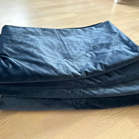 4 høyder mørkblå Mali gardiner selges helst samlet 500 kr.