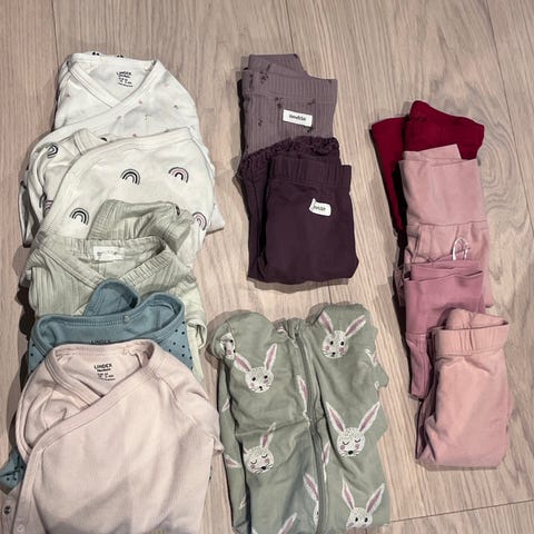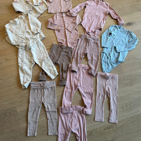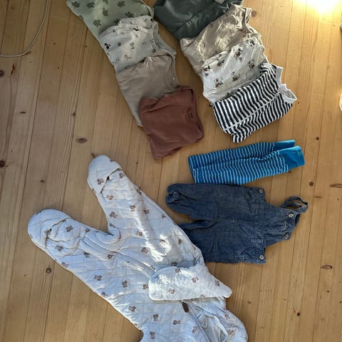 Blandet klespakke, en ullbody, bukse og pysj, ellers myke gode klær og noen klær vi aldri rakk å bruke 💐