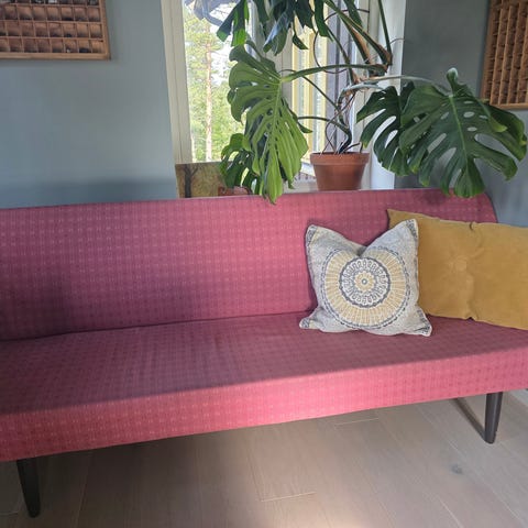 Romslig svingstol: Selger også en komfortabel svingstol i ullstoff (grønt/gult) som matcher sofaen perfekt. Lett å flytte, tar liten plass. Stolen er lagt ut i en annen annonser😉