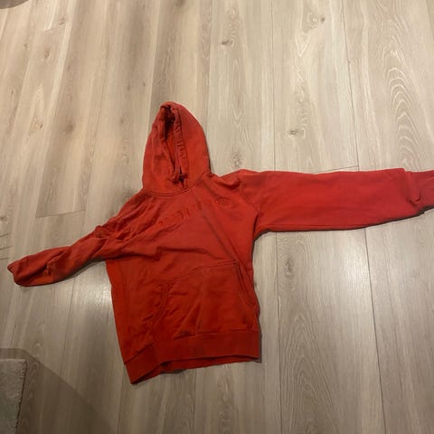 Superdry hettegenser for herre i størrelse L. Genseren er rød og laget av bomull. Den har hette med snøring og stor lomme foran. Passer til hverdagsbruk og fritid.