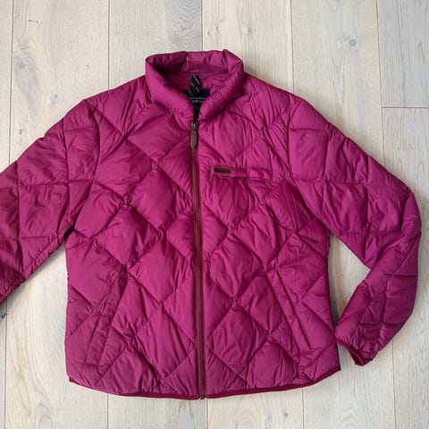 The North Face vinterjakke for dame i størrelse XL. Jakken er rosa og laget i polyester. Den har glidelås i front, ståkrage og sidelommer med glidelås. Quiltet mønster gir jevn fordeling av isolasjonen. Elastiske avslutninger nederst og ved ermene bidrar til bedre passform og varme. Passer som ytterjakke i kjølige og kalde perioder.