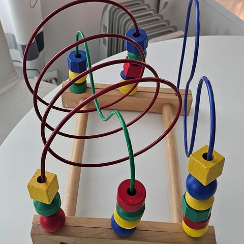 Selger en som ny kulelabyrint fra IKEA (UPPSTÅ-serien). Solid og fargerik aktivitetsleke i tre hvor barnet flytter figurer langs banene – fin for å øve finmotorikk, koordinasjon og enkel problemløsning.