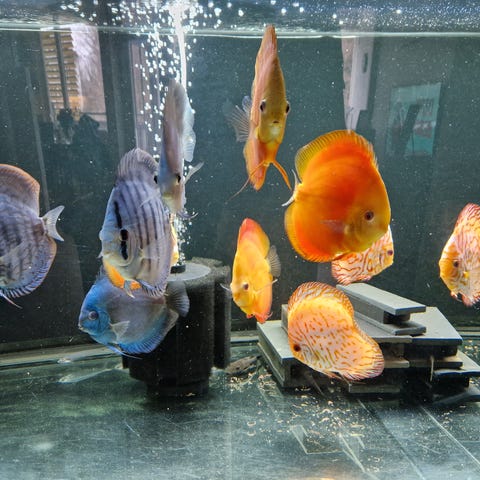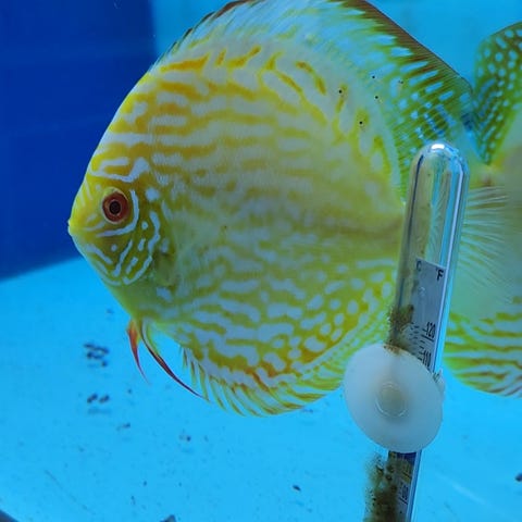 Selger et discus lekspar som får frem frittsvømmende yngel.