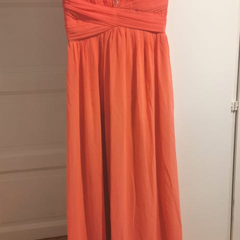 H&M kjole for dame i one size. Kjolen er rosa og laget i polyester. Den har omslagseffekt i overdelen og markert midje med bredt, dekorativt bånd. Lengden er ankellang eller fotsid, avhengig av høyde. Passer til bruk ved ulike anledninger der en lang kjole er ønsket.