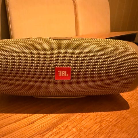 JBL bærbar Bluetooth-høyttaler i svart. Høyttaleren har et kompakt, sylinderformet design med stofftrekk rundt hele enheten og kontrollknapper på toppen. Egnet for trådløs avspilling av lyd fra mobil, nettbrett eller PC via Bluetooth-tilkobling. Passer til bruk hjemme eller på farten der det er behov for en enkel, bærbar lydløsning.