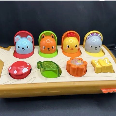 Ønsker å få solgt en interaktiv pop-up leke fra Fisher Price. Leken er pent brukt og er i god stand. Ingen merker eller skader utenom et lite merke på soppen (se bilde). Kjøpt fra Jollyroom for 400 kr.