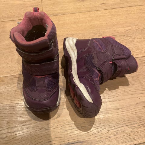 Viking vintersko for barn i størrelse 25, til jente. Skoene er i hovedsak lilla med rosa detaljer. Modellen har høy skaft for bedre støtte rundt ankelen og to borrelåsstropper som gjør det enkelt å ta skoene av og på og justere passformen. Yttersålen har kraftig mønster for godt grep på underlaget. Innvendig er skoene mykt fôret for økt komfort i kaldere vær. Egner seg til hverdagsbruk i høst- og vintersesongen.