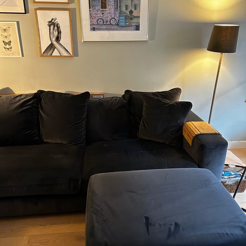 Sofaens seteputer har behov for reparasjon/omtrekking.