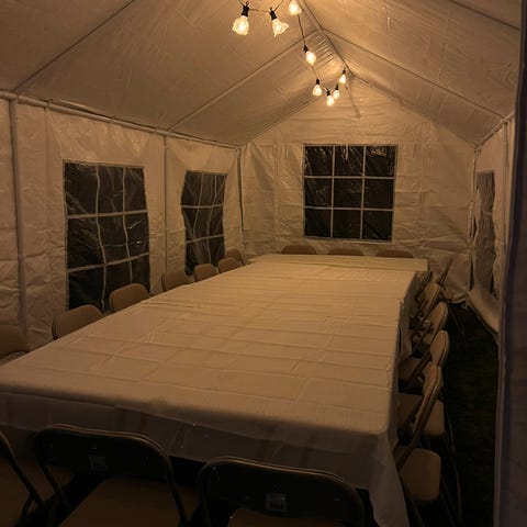 Søkeord: partytelt, hagefest, fest, bryllup, konfirmasjon, dåp, 30-årslag, 40-årslag, 50-årslag, 60-årslag, firmafest, ekstratelt, bord, klappbord, klappstol, stoler, lyslenke, partylys, lysslynge