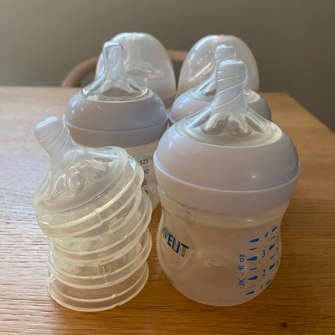 Alle flaskene er vasket og sterilisert, noen av flaskesmokkene er nyere enn andre.