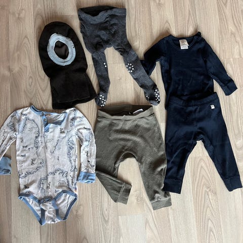 Klespakke i ull brukt til gutt str. 68. 3 body og 2 bukser.