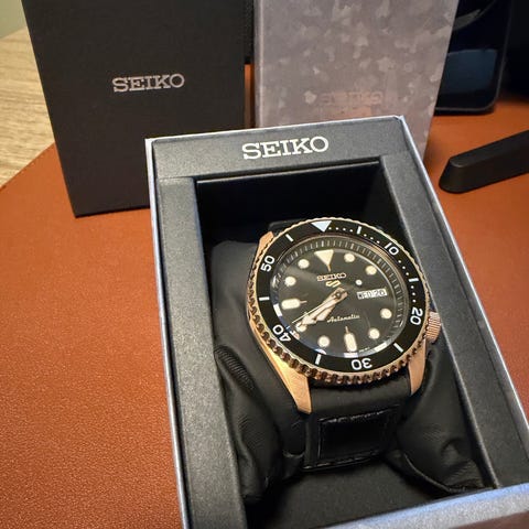Klokken har urskive med dato- og ukesvisning, samt selvlysende timemarkører.