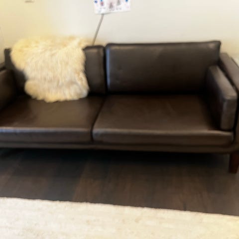 Pent brukt Weston 3 seter XL med 2 nakkestøtter selges. Material er Ecohud lys brun / cognac med brune ben. Pent brukt og uten flekker. Kjøpt ny Januar 2023 på Bohus. Selges 3500,-