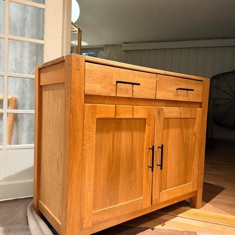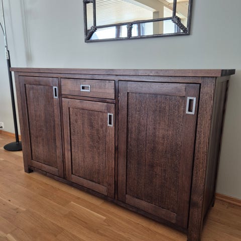 Fin og massiv TV-benk i tre som tåler mye behandling og kan vare i mange år. Selges da vi ikke har plass til den lenger.