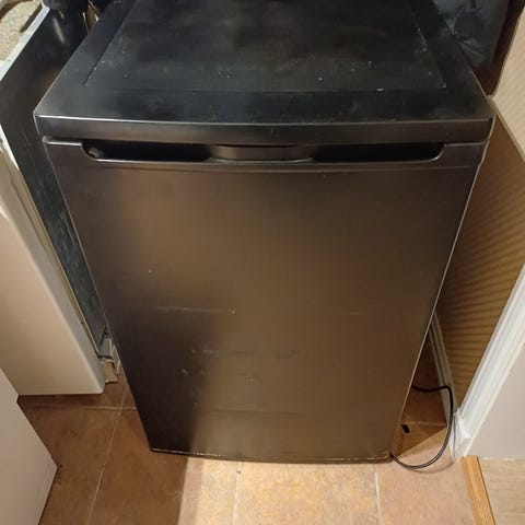 Stillegående. Fungerer utmerket. Mål: 180 x 54x54. Innholdet følger ikke med:)