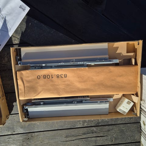 Til overs etter montering av kjøkken. Kjøkkenet er fra Huseby, men trur disse skinnene fra Blum er ganske "universale".