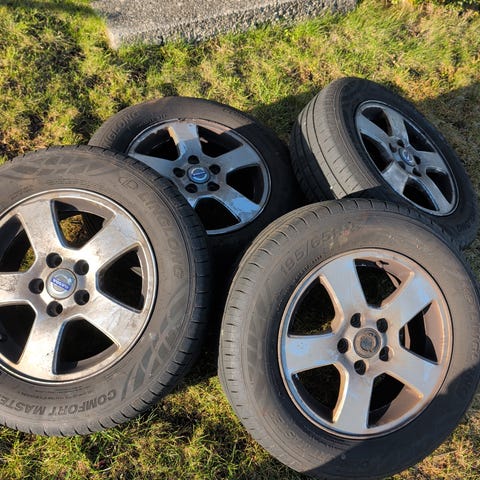 195/65/15 Piggfri Continental Viking Contact 7 dekk på felg til Volovo v50 selges rimelig. Holder en sesong til. Prisant el bud