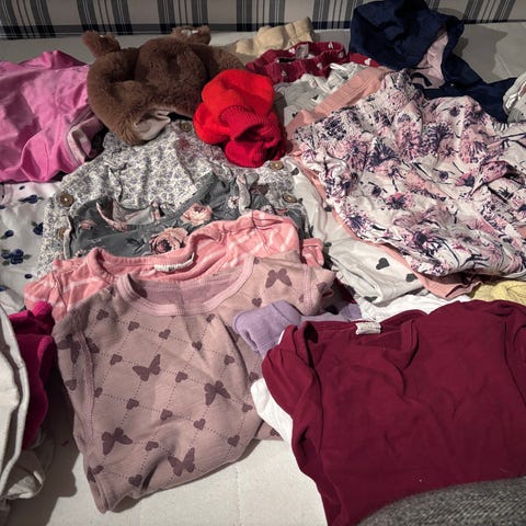 3 joggebukser, 1 linbukse, 3 tynne gensere, 2 bodyer, 3 college gensere, 1 T-skjorte