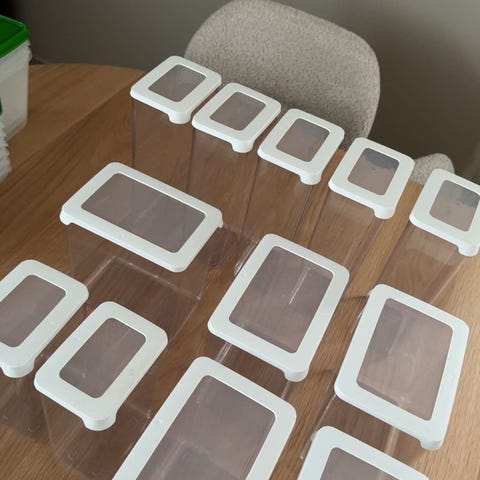 IKEA og Clas Ohlson oppbevaring selges. Kun en som har en liten «ripe/hakk» ellers trenger resten bare en vask