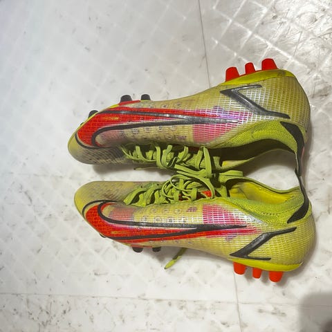 Nike Mercurial fotballsko i størrelse 40 (EU). Modellen har overdel i lett syntetisk materiale med snøring og lav profil. Yttersåle med faste knotter til bruk på gress. Fargekombinasjon hovedsakelig grønn med detaljer i rødt og svart. Passer til fotballspillere som ønsker en lett og tettsittende sko til bruk på gressbaner.