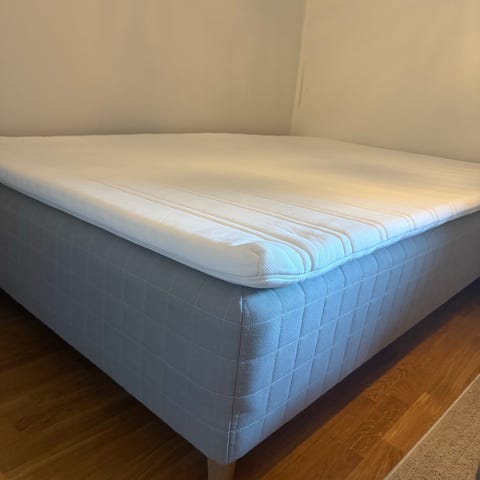 Madrass ble kjøpt ny i august i fjor, der både seng og madrass har stått på gjesterom, så madrass er brukt muligens 3-4 ganger. Kostet 2500,- ny. Overmadrass I grei stand (annen enn på bilde) kan fås med gratis hvis ønskelig.