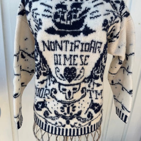 Flott ullgenser med blomstermotiv selges