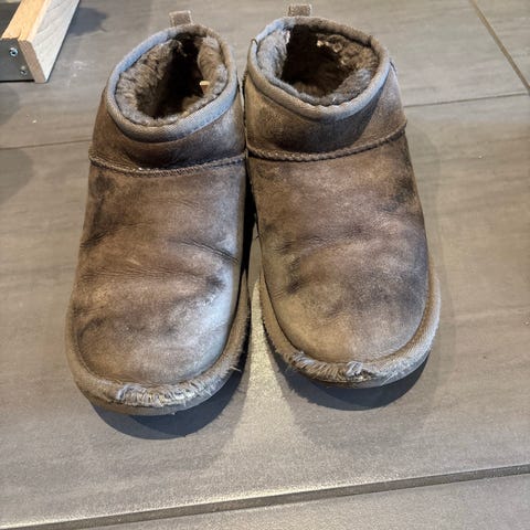 UGG barnesko støvler i størrelse 38 for unisex. Støvlene har brun farge og klassisk UGG-design med mykt, isolerende fôr på innsiden.