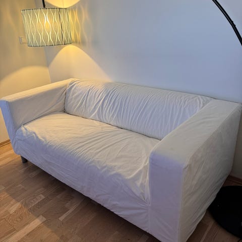 Sofa fra IKEA, eldre Klippan (tror jeg). Noen flekker som vist på bildene. Ingen hull el., kun flekker.