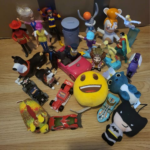 Småleker med bl.a. Hello Kitty og Minions selges samlet for kr. 15,-