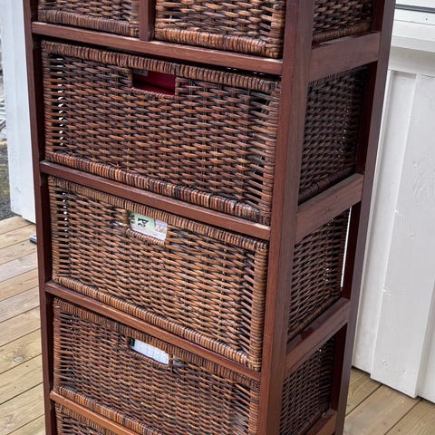 Smal kommode fra Bohus selges🗄 denne er i mørkebrunt treverk og rottingskuffer. Den er hel og fin, men noen bruksmerker må påregnes (se bilde av toppen).
