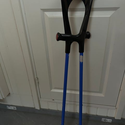 Justerbar høyde med trinnvis regulering på skaftet og gummiknotter nederst for bedre grep mot underlaget.