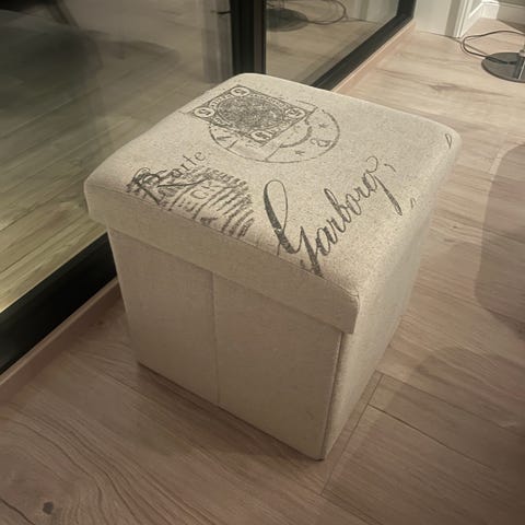 Selger denne oppbevaringspuffen da vi ikke har behov for den lengre, er i god stand og ikke synlig brukt