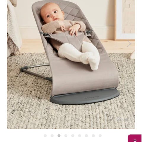 Pent brukt Babybjörn Bliss vippestol i grå farge, med avtagbar lekebøyle foran