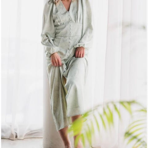 Neo Noir sommerkjole i størrelse 36 for dame. Kjolen er grønn med blomstrete mønster. Den har dyp utringning, lange ermer med strikk og volangkant nederst. Kjolen har omslagseffekt med knytebelte i livet og lett utsvingt skjørt. Passer til bruk på varme dager og til sommerlige anledninger. #bryllup #konfirmasjon