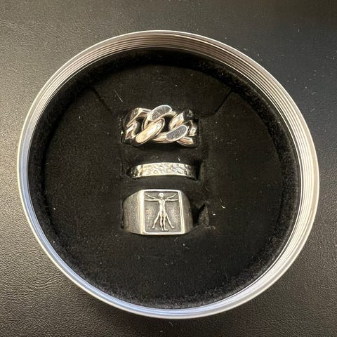 Nydelig Fusion ring str 59 . 3deler to uten diamanter og en med . Hele ringen er i hvit gull. Kan brukes på mange måter. Kjøpt hos Dahlsveen gullsmed i Trondheim 25.06.25. Følger med kvittering og diamant bevis. Ny pris 57 200,-
