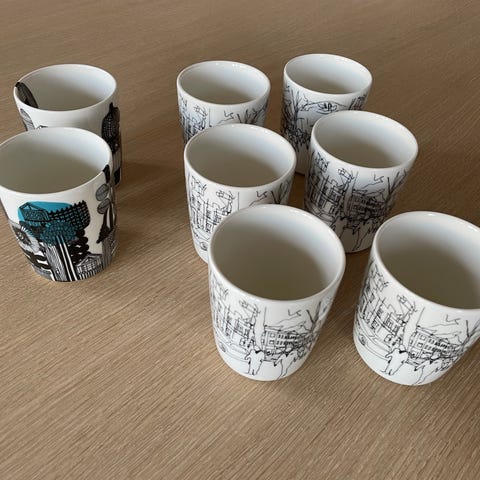Arabia moomin / mummikopper vinterkrus 2019, 2020, 2021 og 2023. 2 med klister og 2 uten