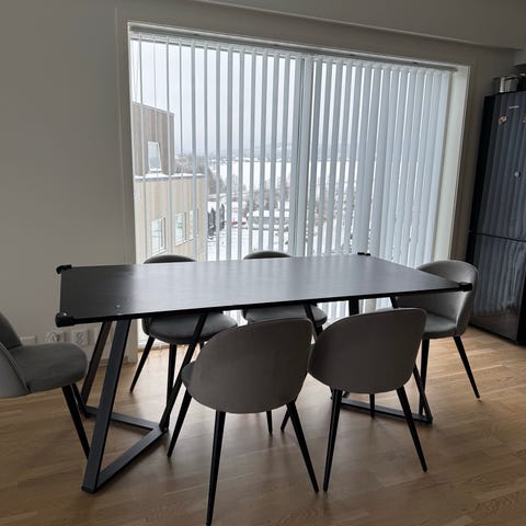 Følger med 4 stoler.