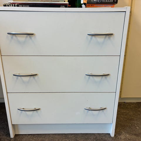 Romslig kommode med 3 store skuffer. Fungerer bra, men har noen bruksmerker.