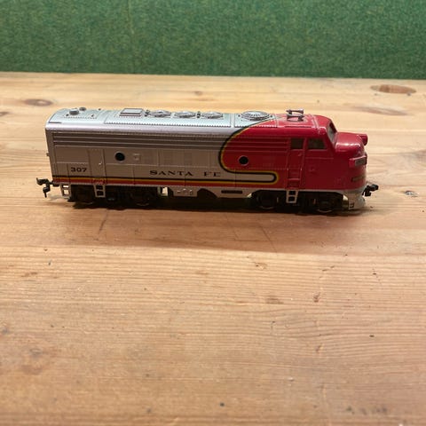 Lokomotivet er detaljert med nummer 100 og Santa Fe-merking på sidene. Egnet for modelljernbane og samlere som ønsker en amerikansk Santa Fe-diesel i anlegget sitt. Sporvidde og skala er ikke spesifisert på bildene og bør kontrolleres mot egen bane før bruk.