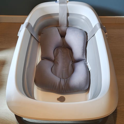 Baby badekar med sklisikre markeringer i bunnen, egnet for bading av spedbarn og små barn.