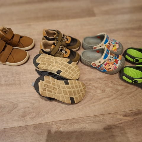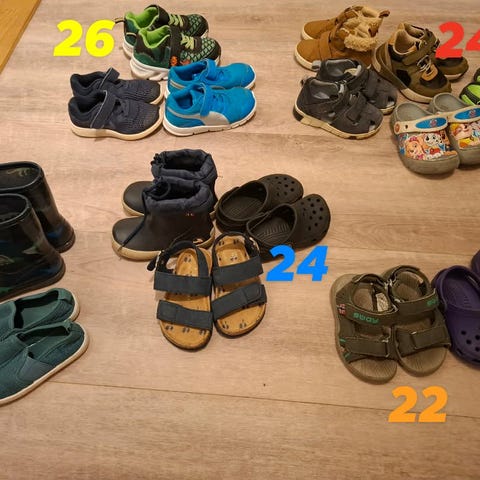 Øverst er str 22, nederst 23, crocs er en mellomting